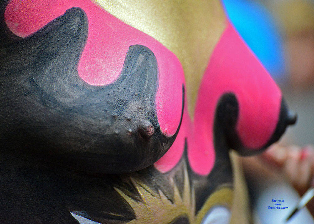 Here are some photos of two more volunteers who were both attractive and receptive to having photos taken. Both drew a crowd of onlookers as they were transformed by body paint.