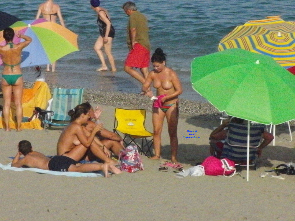 Topless Girls Beach Brunette Outdoors Beach Voyeur