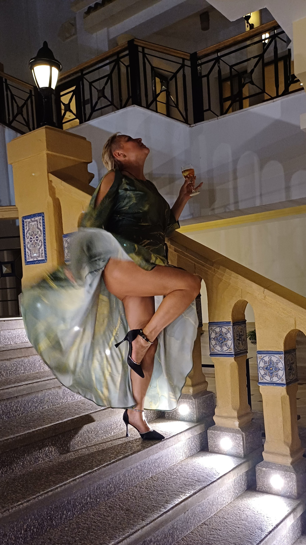 Долгий и приятный вечер в ресторане. За ужином я ловлю на себе похотливые взгляды нескольких мужчин. Вижу, как они разрывают меня на части своими глазами. Несколько бокалов вина снимают внутренние тормоза. Меня охватывает игривое настроение и возбуждение. По пути в номер отеля я встречаю ещё нескольких мужчин. Некоторые идут одни. Некоторые проходят мимо со своими жёнами... женщинами. Я ловлю на себе взгляды всех. Некоторые улыбаются мне и, не решаясь заговорить со мной, проходят мимо, оглядываясь. Моё вечернее платье уже тянет меня вниз, и мне хочется поскорее его снять. И по дороге я начинаю это делать. От выпитого вина и похотливых взглядов мужчин моя киска становится мокрой. Я помню эти взгляды мужчин в ресторане и по дороге в номер. В моей голове крутится карусель и я начинаю фантазировать... «А что, если все эти мужчины»… Меня это заводит и я начинаю мастурбировать прямо у двери своей квартиры и… бурно кончаю.